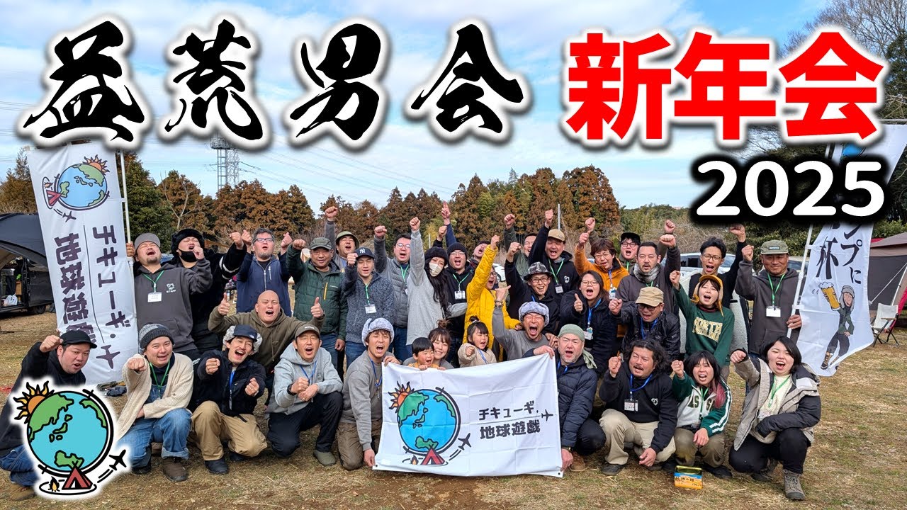 チキューギ.オフ会キャンプ「益荒男会・新年会2025」の様子をお届けします。めっちゃ盛り上がるグループキャンプです。